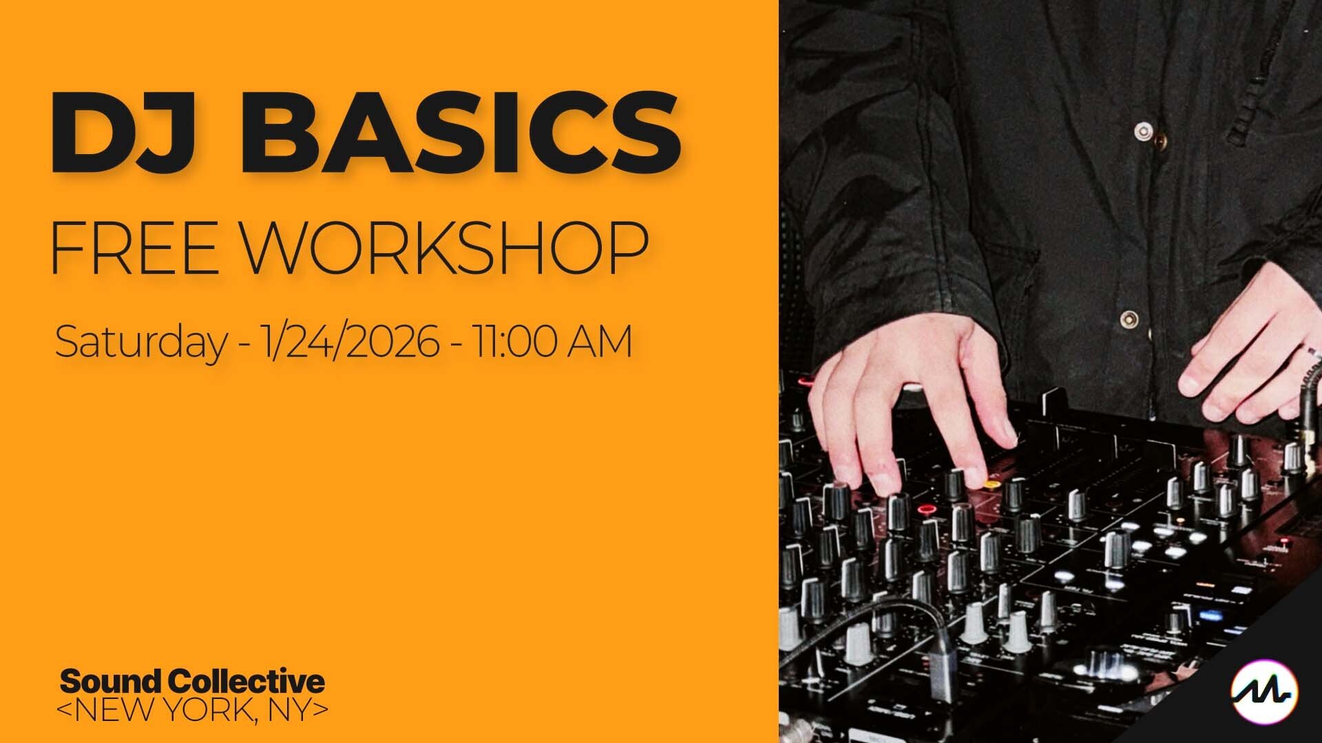 DJ Basics is a free, beginner-friendly workshop designed for anyone who’s ever wanted to try DJing but didn’t know where to start. Hosted in Sound Collective’s New York City studios, this two-hour, hands-on session introduces the core fundamentals of DJing using professional, industry-standard equipment. You’ll learn how DJs structure mixes, control tempo, and transition between tracks, then step behind the decks to try it yourself in a supportive, no-pressure environment. Whether you’re just curious about DJing or exploring a new creative path, this workshop gives you a real first experience.